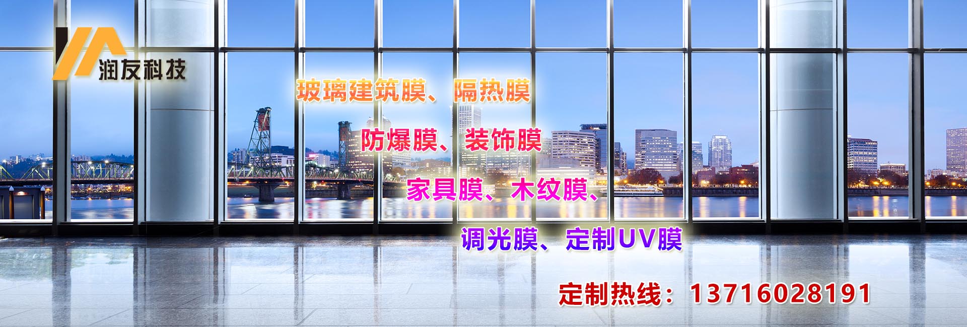 北京市潤友科技發(fā)展有限責(zé)任公司,是一家專注于建筑玻璃膜銷售、施工為一體、是目前專業(yè)建筑玻璃貼膜領(lǐng)袖企業(yè)。   公司致力于玻璃建筑膜、隔熱膜、防爆膜、裝飾膜、調(diào)光膜、木紋膜、家具膜、定制UV膜等等的應(yīng)用推廣,并在節(jié)能、環(huán)保、技術(shù)創(chuàng)新等領(lǐng)域獲得多項顯著成績,多款式、多風(fēng)格不同角度滿足客戶多元化需求。 ????經(jīng)過多年的探索研究公司制定內(nèi)部施工標(biāo)準(zhǔn),從設(shè)計效果、施工規(guī)范、工地管理、質(zhì)保維護等方面嚴控源頭規(guī)避施工隱患,為客戶打造安全節(jié)能環(huán)保的體驗環(huán)境。對行業(yè)的發(fā)展和施工工程的標(biāo)準(zhǔn)化提升都具有重要意義,同時也奠定公司在建筑膜行業(yè)的地位。 ????公司自成立于2005年,公司自經(jīng)營建筑玻璃膜以來,承接了石景山奧運場館,釣魚臺國賓館,國務(wù)院機關(guān)事物管理局等大型建筑玻璃貼膜施工任務(wù)。積累了豐富的施工經(jīng)驗,掌握了各種新型施工技術(shù)。多年來恪守“質(zhì)量第一、客戶至上”的服務(wù)宗旨、遵循“優(yōu)質(zhì)、高效、團結(jié)、奉獻的工作態(tài)度、節(jié)能減排、為您創(chuàng)建舒適的家居及辦公環(huán)境。